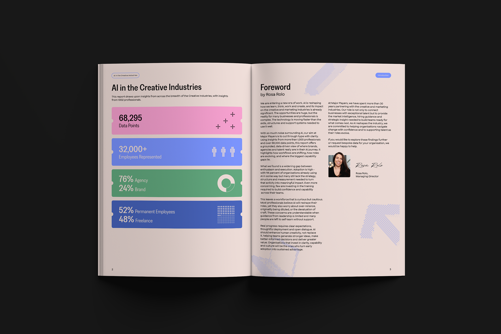 Created with the content manager and marketing director at Major Players, this report highlights key insights on AI’s impact on the creative industry. Using the new brand guidelines, it showcases the refreshed identity through clear, engaging content supported by quotes, infographics, and statistics. Download the full report here.