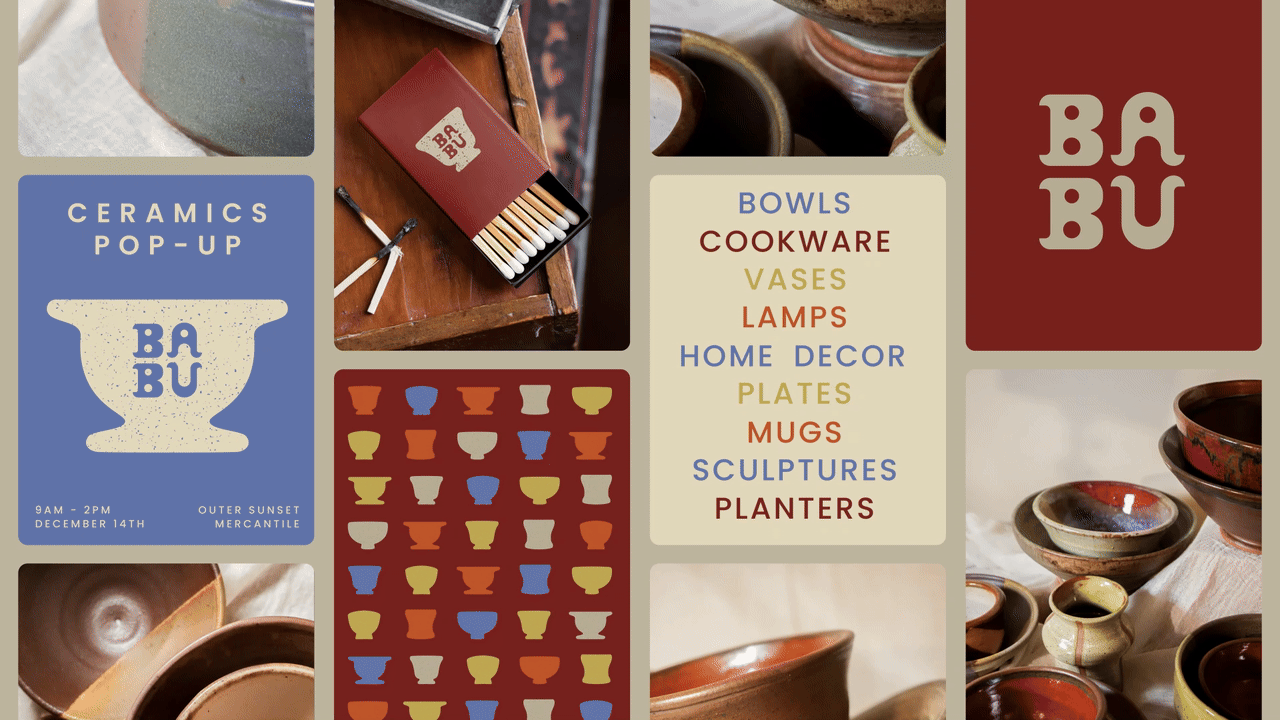 The visual story of Babu Ceramics is shaped by the founder’s Indian heritage. Drawing on her visits to family in India, the brand’s visual language is inspired by the vibrancy of local market stalls, distinctive architecture, and bold, colorful signage.
