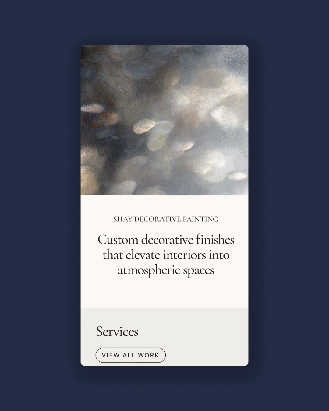 Designed for a decorative artist’s emerging solo business, this website offers an elegant and minimal digital presence. The clean design highlights the artwork while helping establish a professional and confident brand identity.